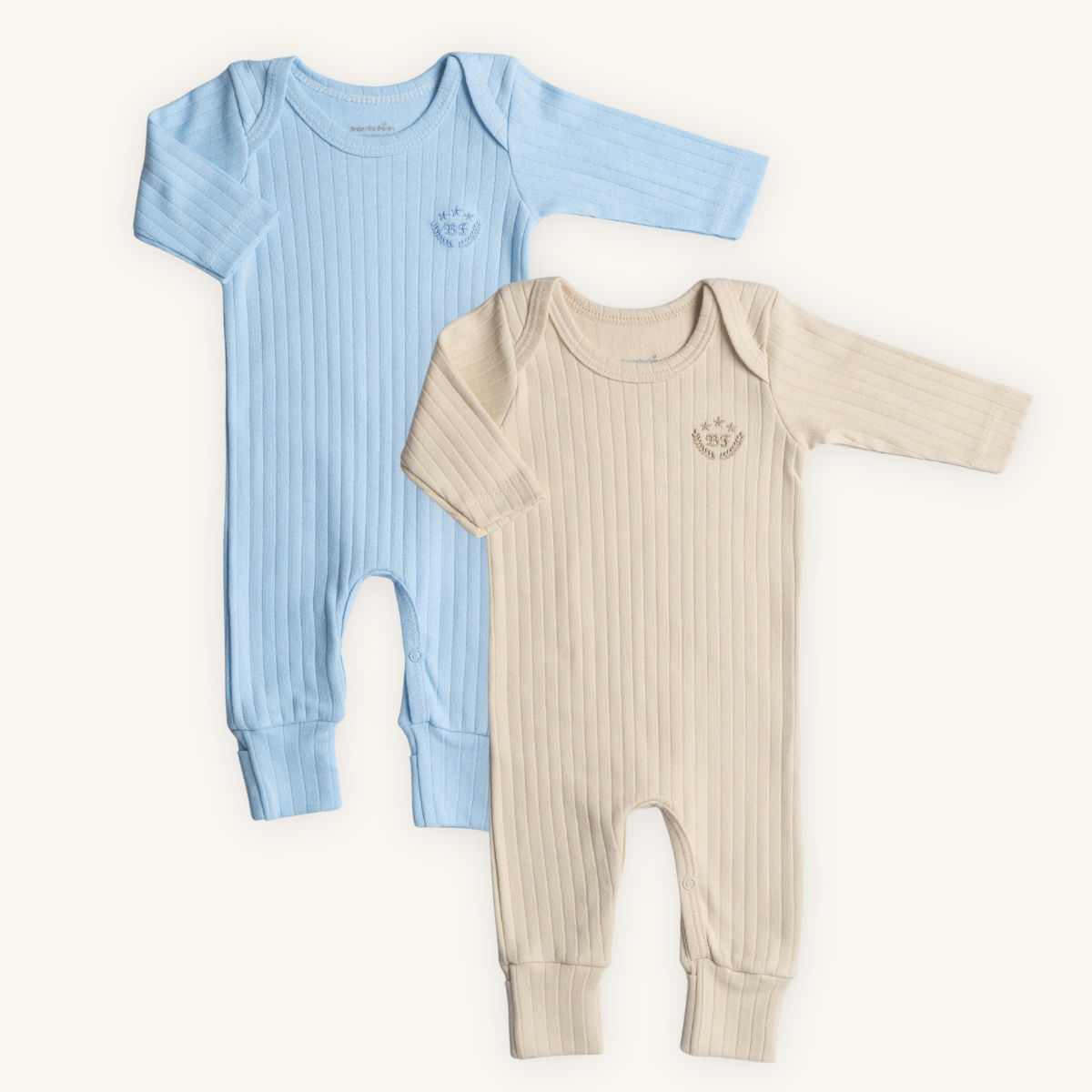Pensando no que as mamães mais amam, montamos este combo especial com as duas cores mais vendidas do nosso body canelado avulso: o clássico Azul e o delicado Cerâmica. São dois bodies longos em malha canelada 100% algodão premium, com toque macio, respirável e excelente caimento — perfeitos para o dia a dia do bebê.