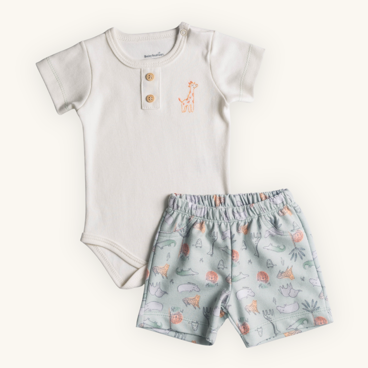 Body produzido artesanalmente em Suedine 100% Algodão, com toque super macio e gostoso. Possui botões de abertura na gola e no entre pernas, para facilitar o dia a dia. Conta com um lindo bordado artersanal de girafa no peito, e botões falsos de madeira na pala para dar um charme especial.