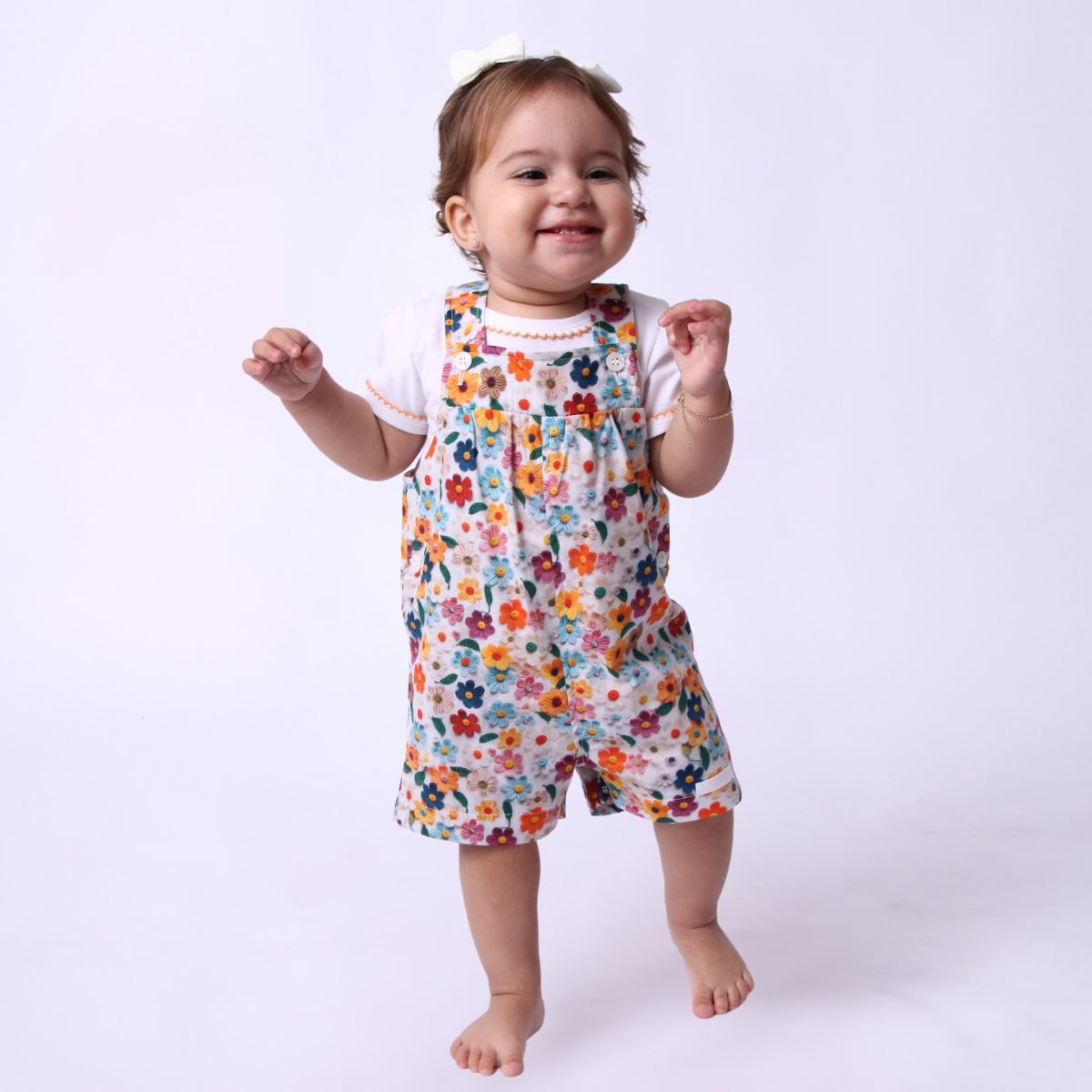 Ideal para meninas de 1 a 3 anos, a combinação é perfeita para passeios, encontros em família ou ocasiões especiais, unindo leveza, estilo e praticidade em um só conjunto.