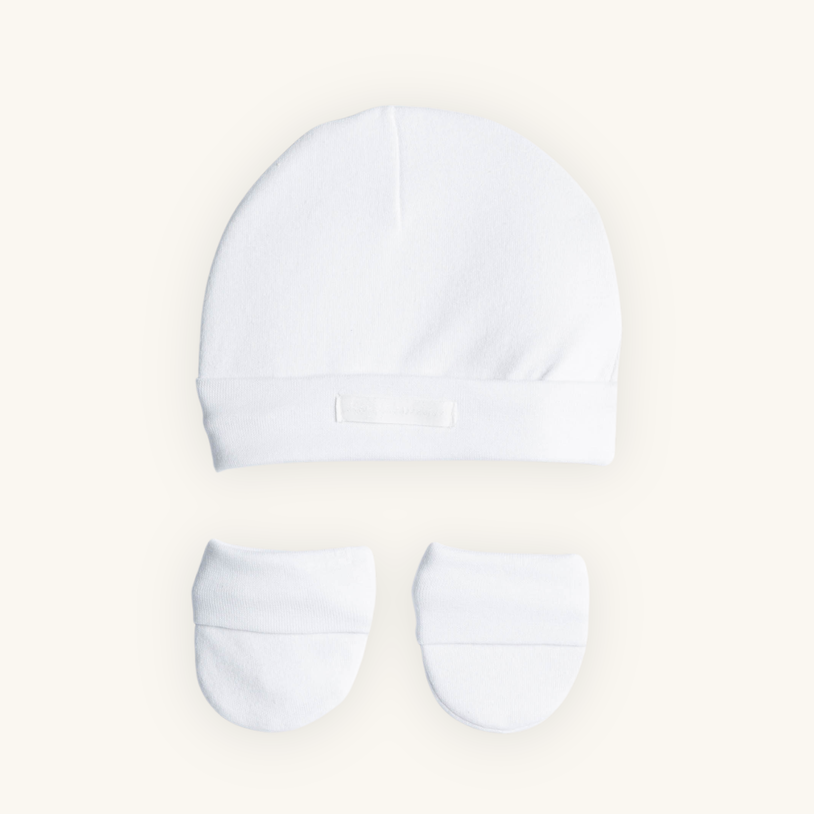 Kit Touca e Luvas Bebê Branco em Suedine Premium 100% Algodão – Proteção, conforto e carinho desde os primeiros dias.