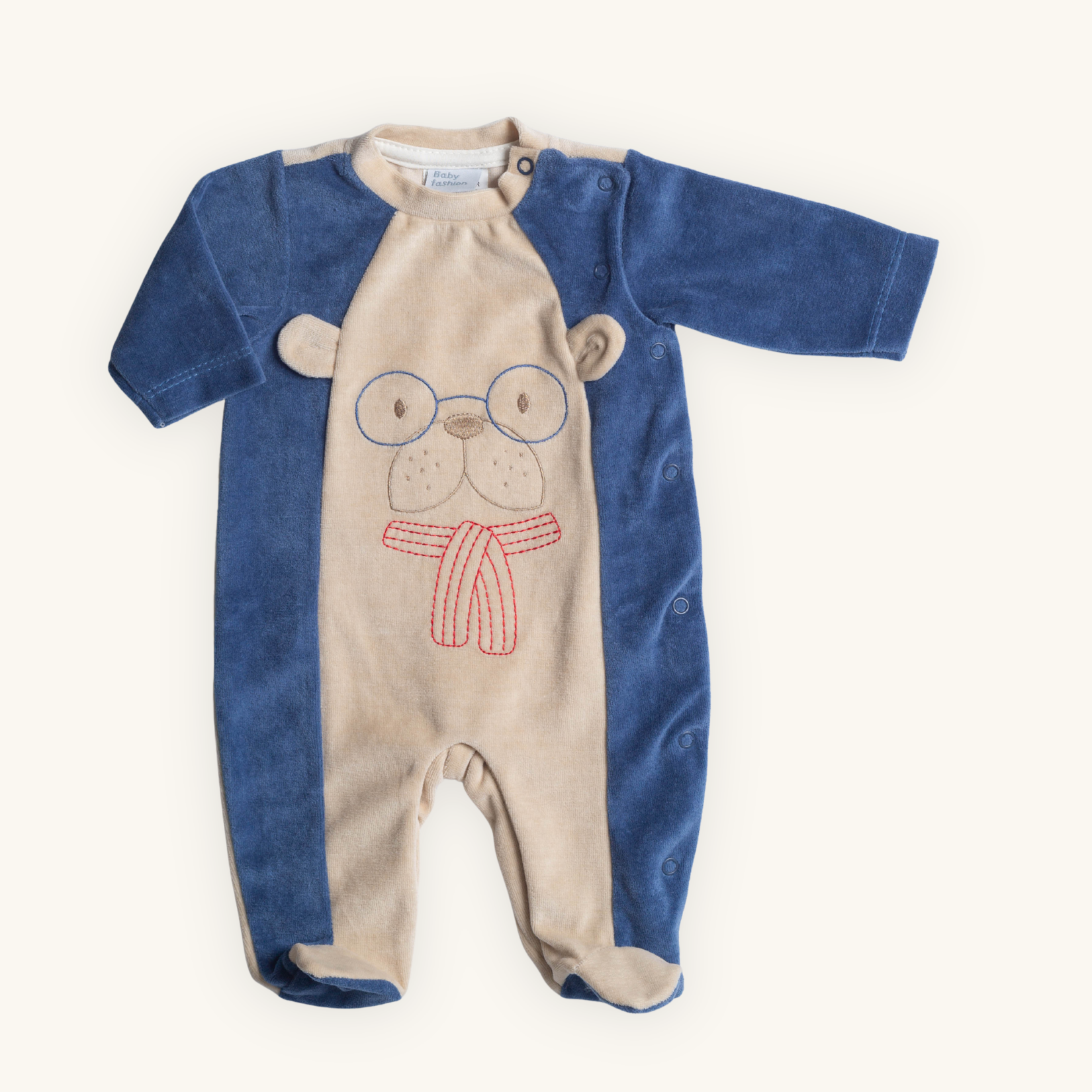 Confeccionado artesanalmente em Plush Premium super macio, esse macacão tem uma combinação linda de azul marinho com cerâmica, perfeita para deixar seu bebê ainda mais fofo e estiloso.