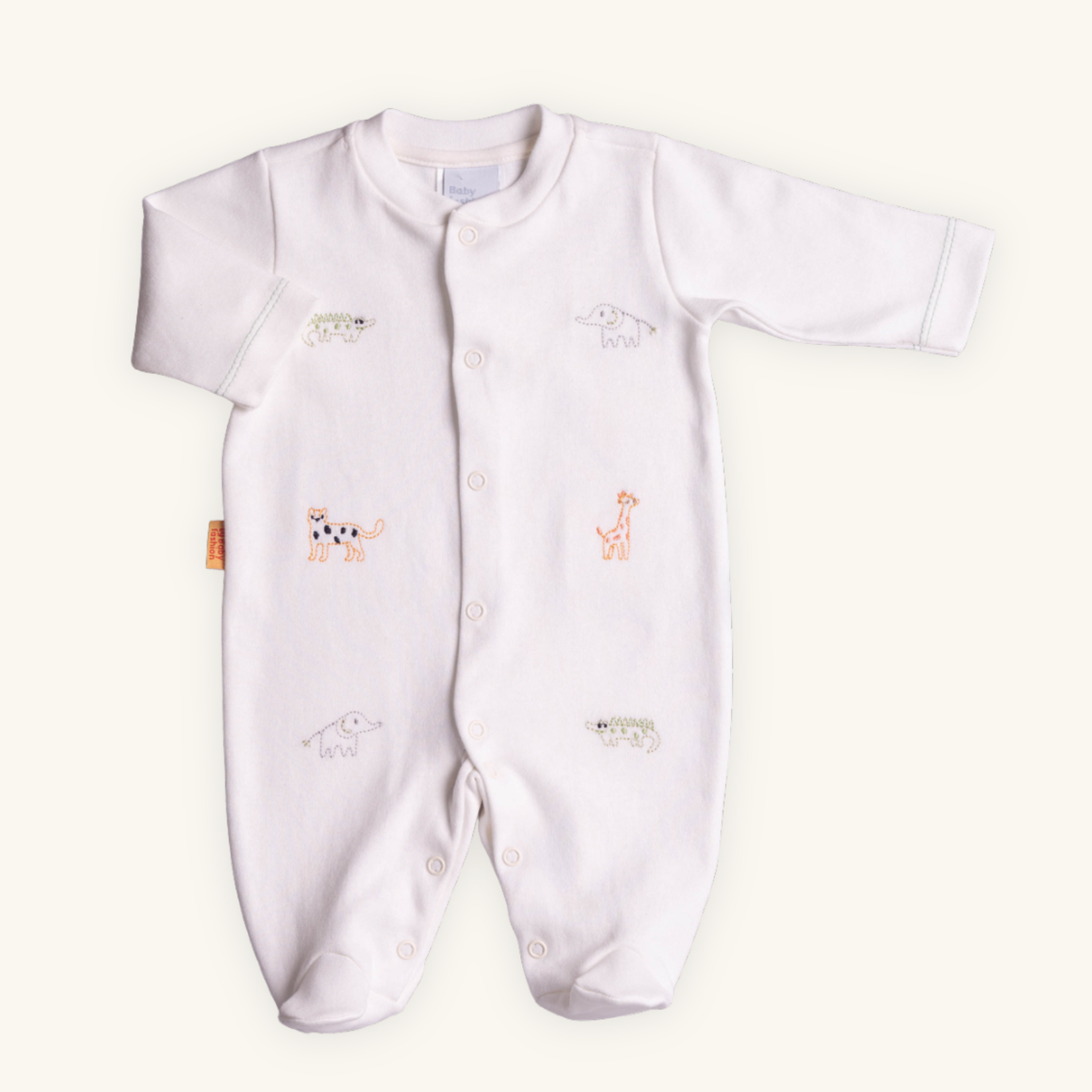 Confeccionado artesanalmente em suedine 100% Algodão nobre, na cor cru, com bordados super fofos, salpicados por toda a peça, diversos animais no tema safari.