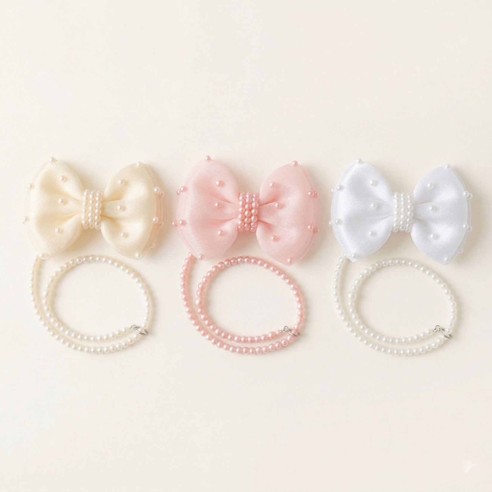 Chique e artesanal, com laço medindo 7cm x 4cm, e aplicação de pérolas, ele deixará sua bebê uma princesa.